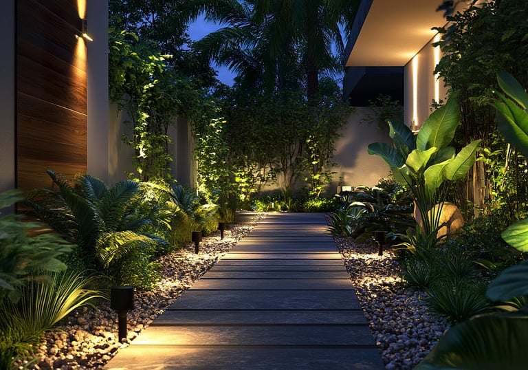Illuminate walkways with subtle, modern lighting for safe, elegant strolls.